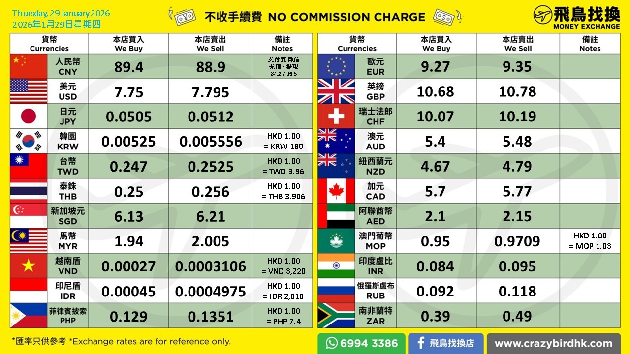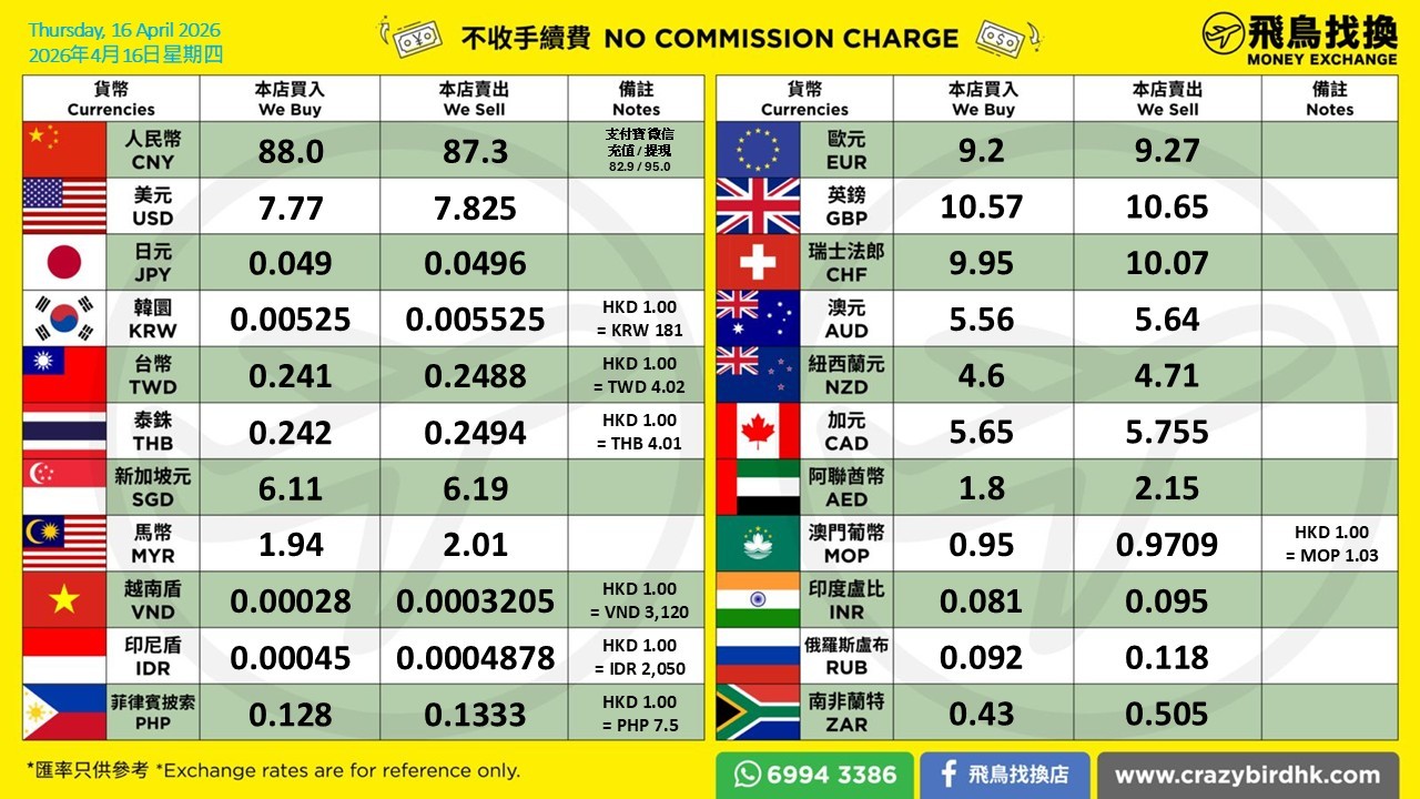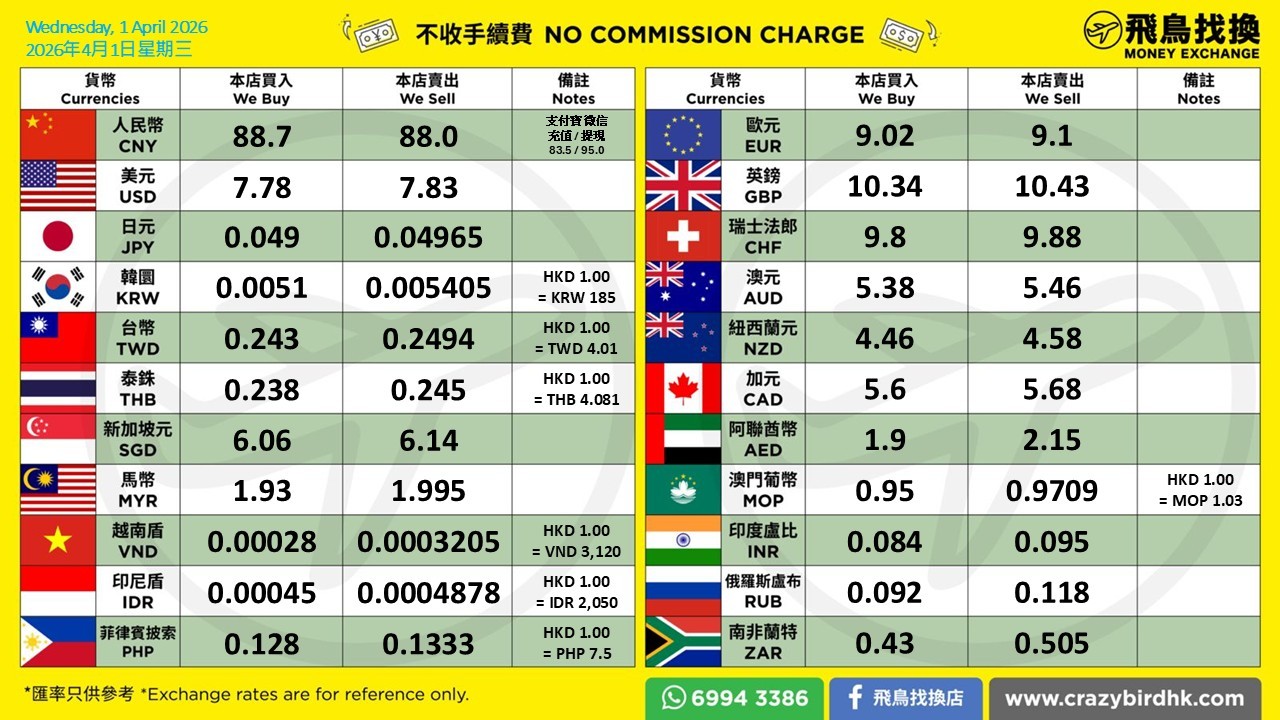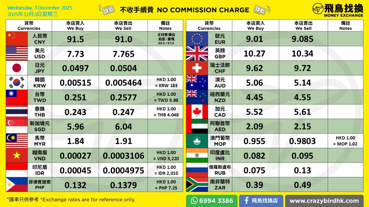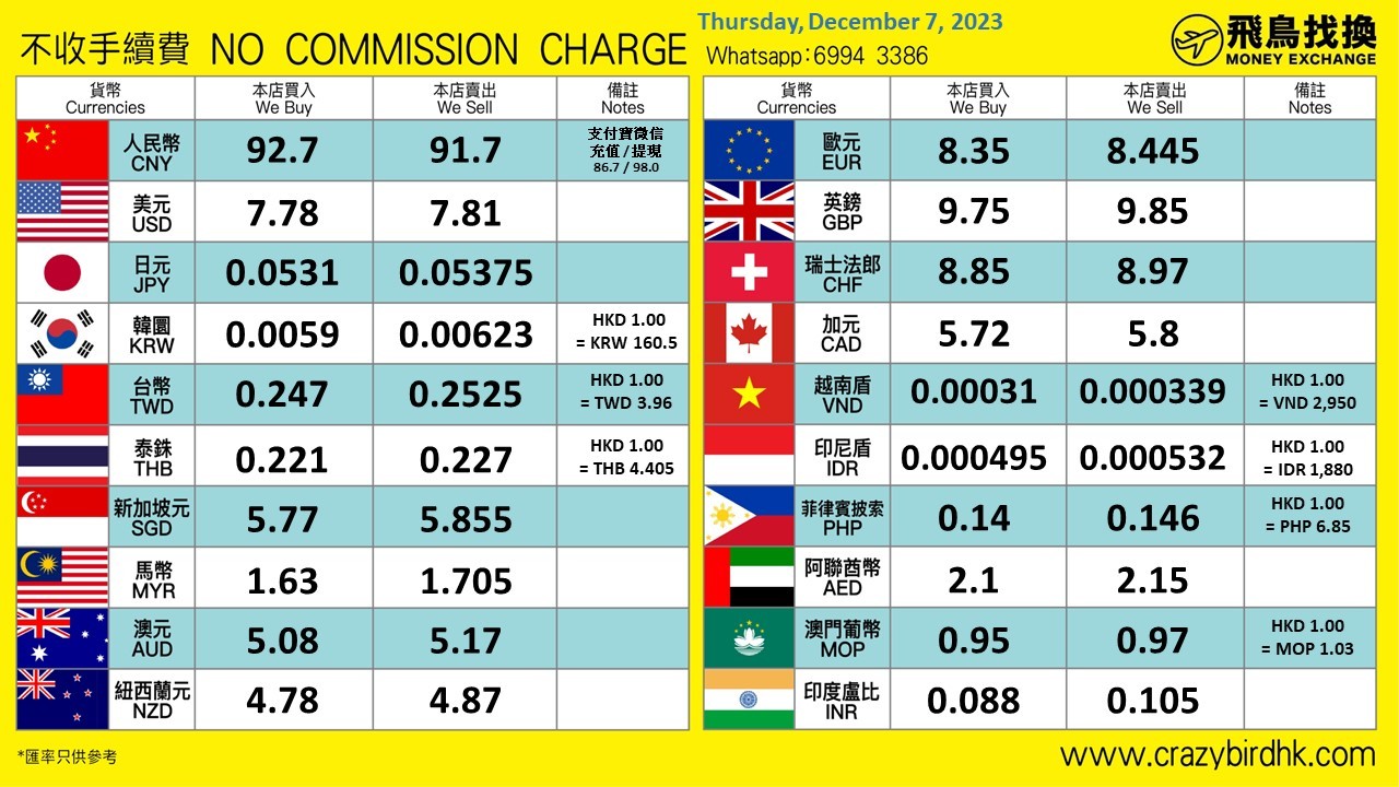為了向我們的客戶提供最優惠的價格,我們每天早上11點設定貨幣匯率(匯率僅供參考)。 只需在WhatsApp上發送短信,即可保留您選擇的貨幣並鎖定優惠價格。